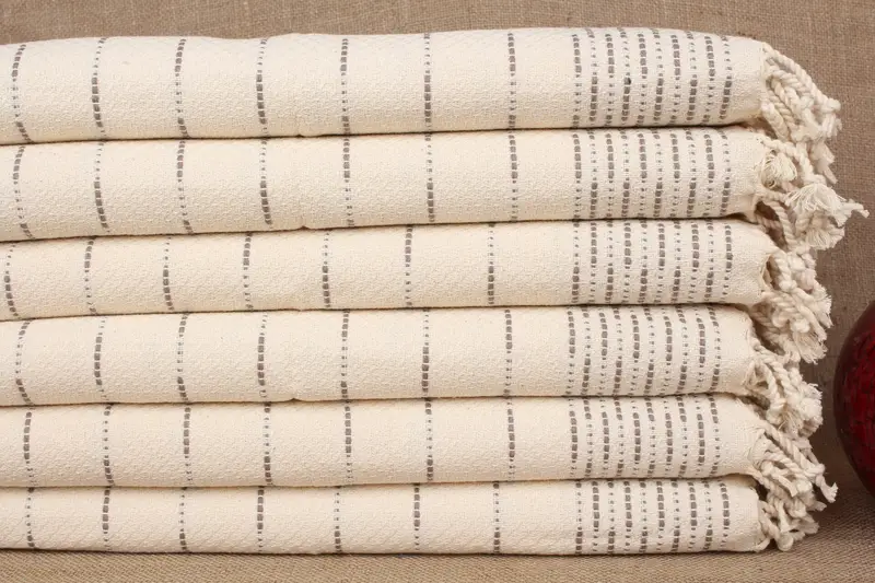 モノグラム キッチンタオル ブラウン ストライプ、18x36 インチ、オーガニックコットン