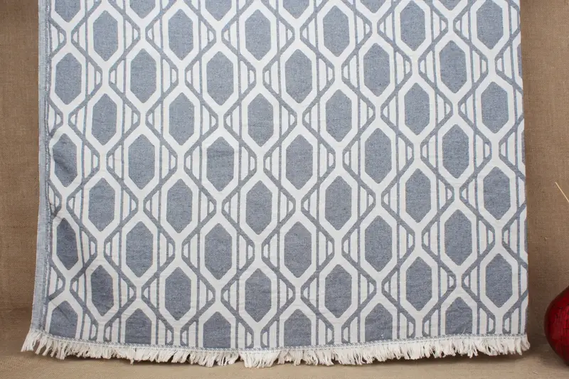 トルコ製ベッドスプレッド ネイビー オーガニックコットン パターンスロー 75x91インチ
