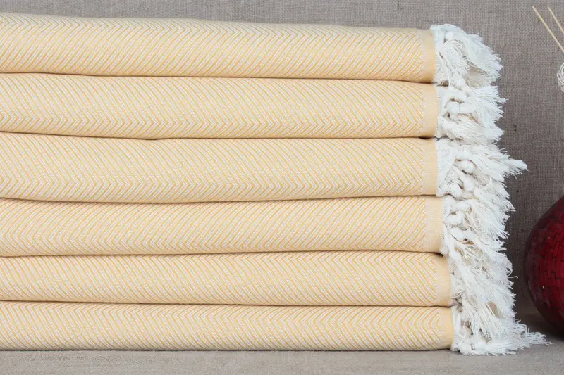 トルコブランケット ハンドメイド オーガニックコットン マスタードシェブロン 67x83インチ