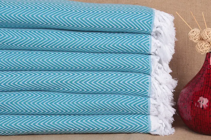 ピクニックブランケット ハンドメイド オーガニックコットン ベージュシェブロン 71x87インチ