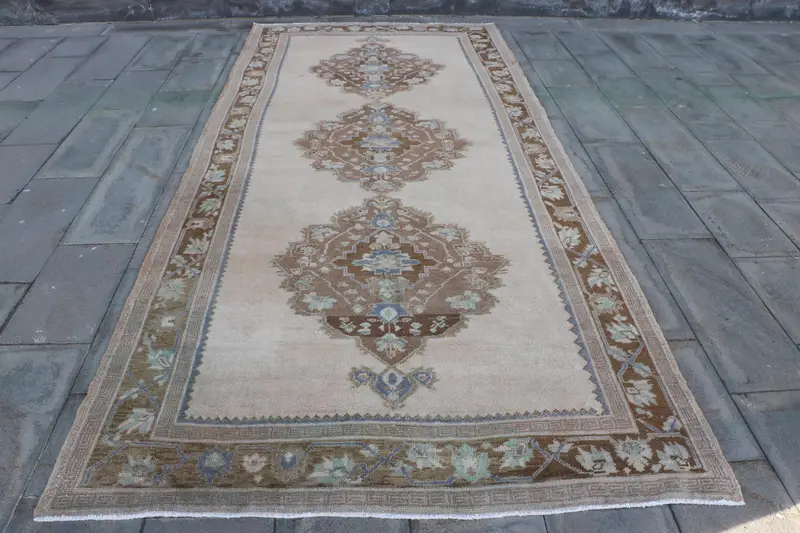 Zarif Bej ve Kahverengi Kareli Halı, 5,4x12,2 ft Şık Dekor