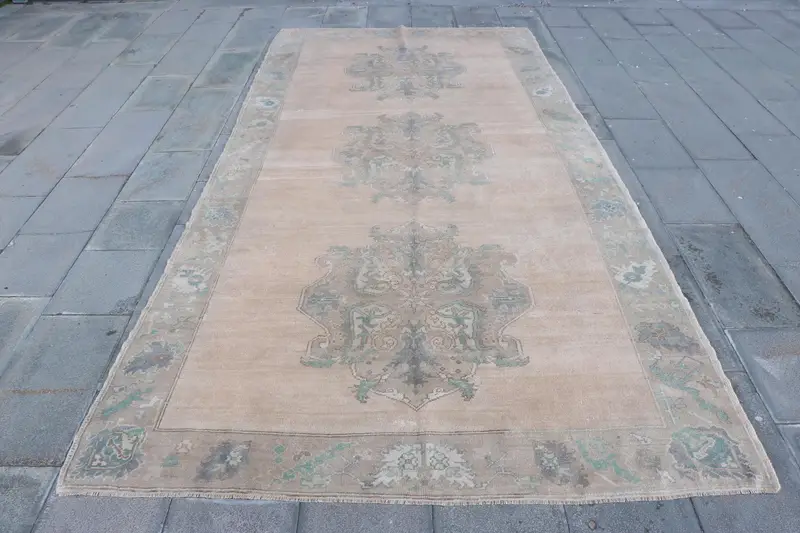 Elegant Bej & Yeşil Kareli Halı, 170x350 cm