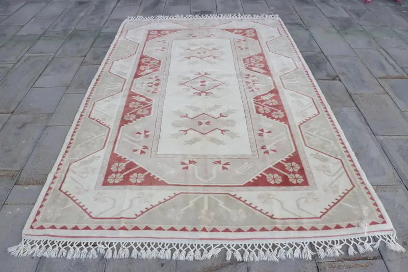 Bej ve Kırmızı Hayvan Baskılı Halı, 5,7x8,9 ft Şık Dekor