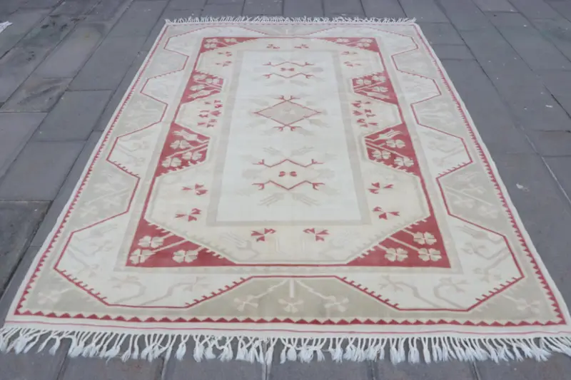Bej Güneybatı Halısı, Kırmızı Desenli 6x8 ft