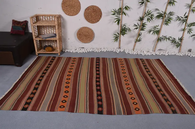 Canlı Gökkuşağı Halı, 5,1x8,3 ft Damalı Tasarım