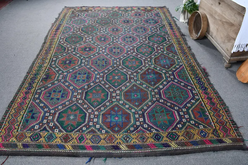 Zarif Yeşil ve Mor Halı, 6,7x10,1 ft Oryantal Tasarım
