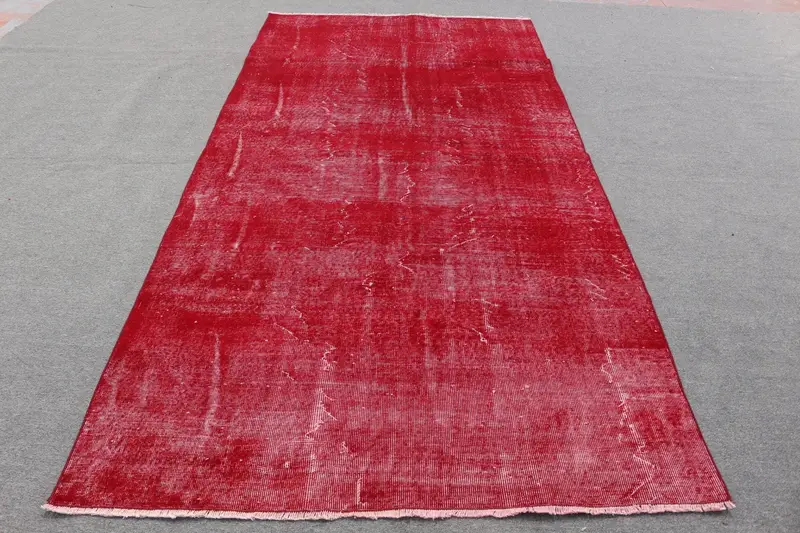 Kırmızı Geometrik Halı, Çiçek Motifli 4,9x9,9 ft