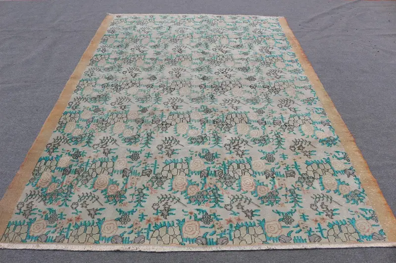 Canlı 6,5x9,1 ft Halı, Çizgili Geometrik Turuncu ve Yeşil