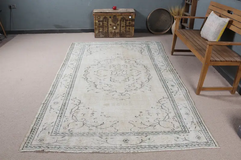 Zarif Bej Oryantal Halı, 5,4x8,7 ft Bej ve Kahverengi