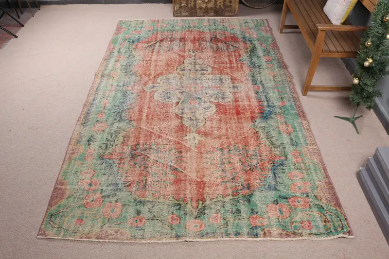 Yeşil Desenli Kırmızı Halı, 5,9x9,5 ft Zarif Dekor