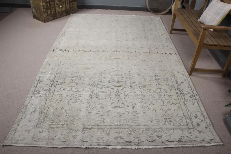 Zarif Bej Çiçekli Halı, 5,9x9,7 ft Şık Dekor