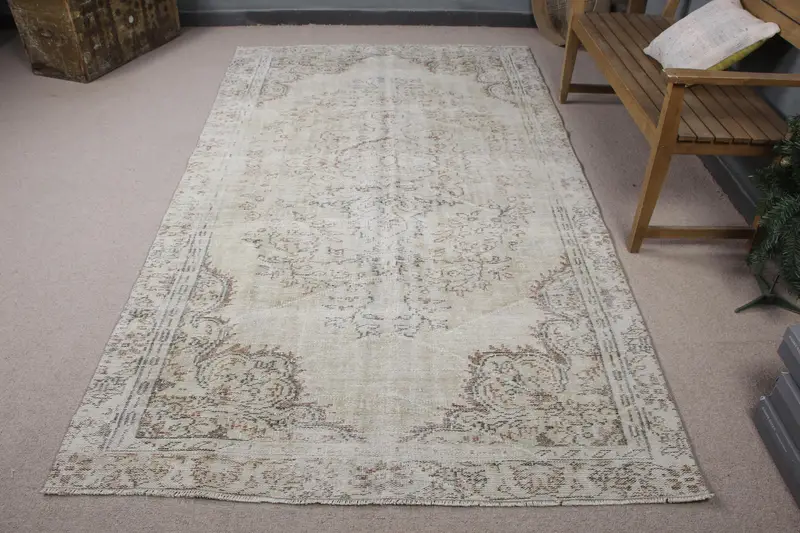 Zarif Bej ve Mor İkat Halı, 5,5x9,4 ft