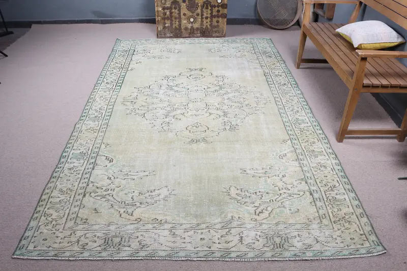 Zarif Yeşil Hayvan Baskılı Halı, 5,8x9,5 ft