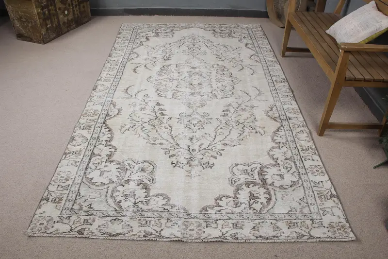 Zarif Bej ve Kahverengi Halı, 5,3x9,2 ft Hayvan Baskı