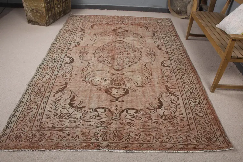 Canlı 6x9 ft Halı, Kahverengi Desenli Turuncu Puantiyeli