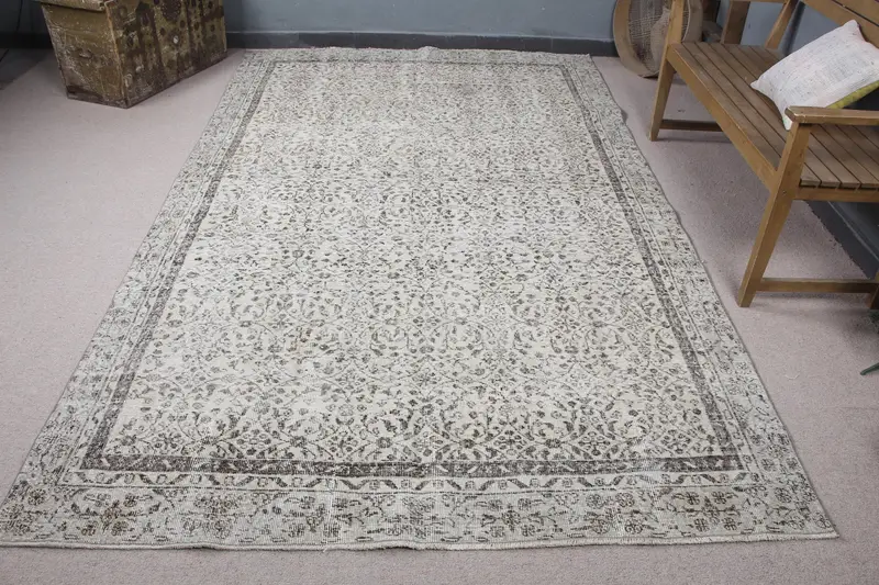 Zarif Bej İran Halısı, 6,4x10,4 ft Bej ve Kahverengi