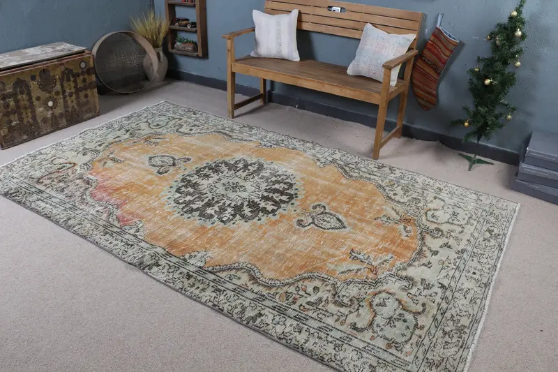 5,2x9,2 ft Turuncu Halı, Çiçek ve Geometrik Desenli