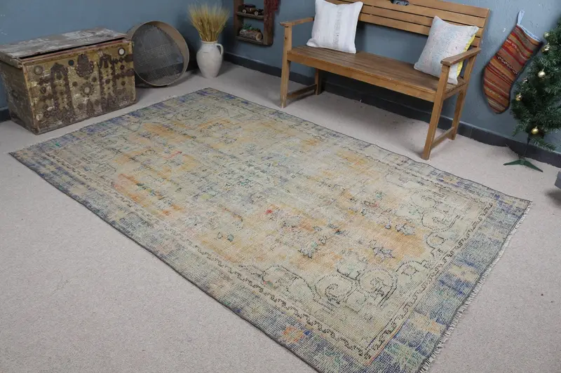 Turuncu ve Mavi Soyut Halı, 5,5x8,5 ft Canlı Dekor