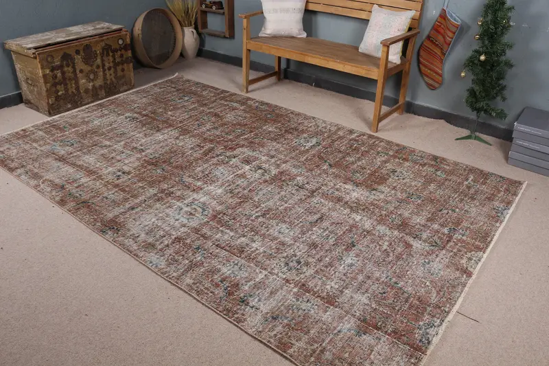 Kahverengi ve Mavi Çiçekli Halı, 6.1x9.8 ft Zarif Dekor