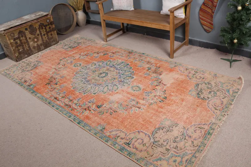 Turuncu ve Mavi Güneybatı Halısı, 4,8x9,2 ft