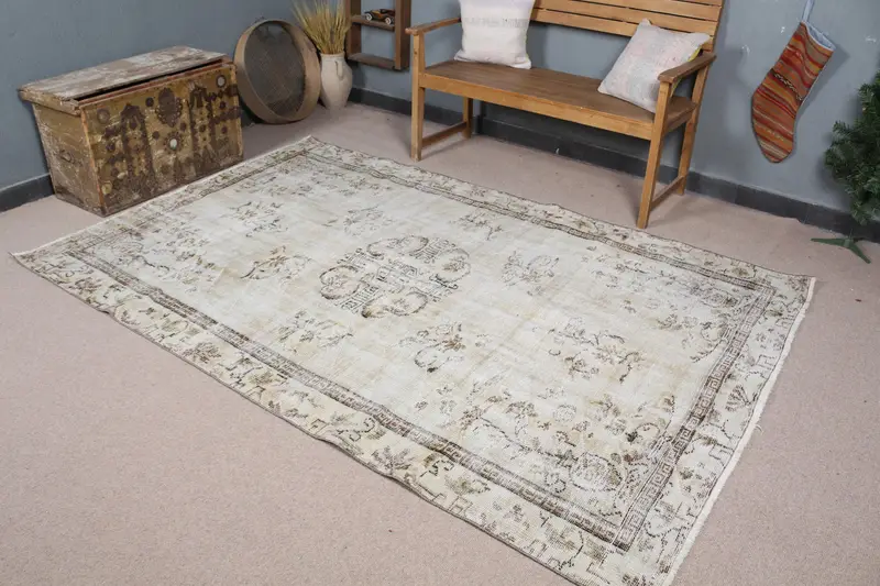 Bej Güneybatı Halısı, 5,5x8,3 ft Zarif Ev Dekoru