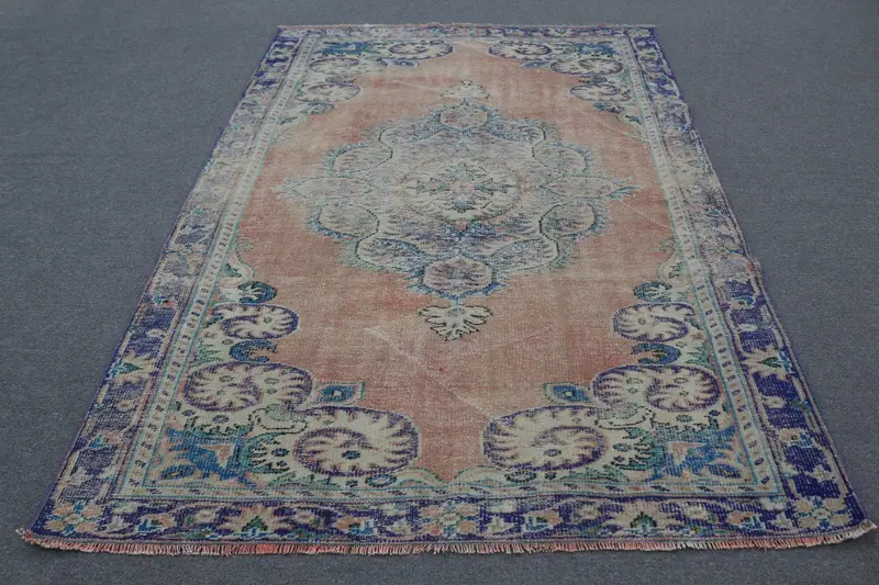 Kırmızı ve Mavi Halı, 5,5x8,1 ft Çizgili Geometrik Tasarım