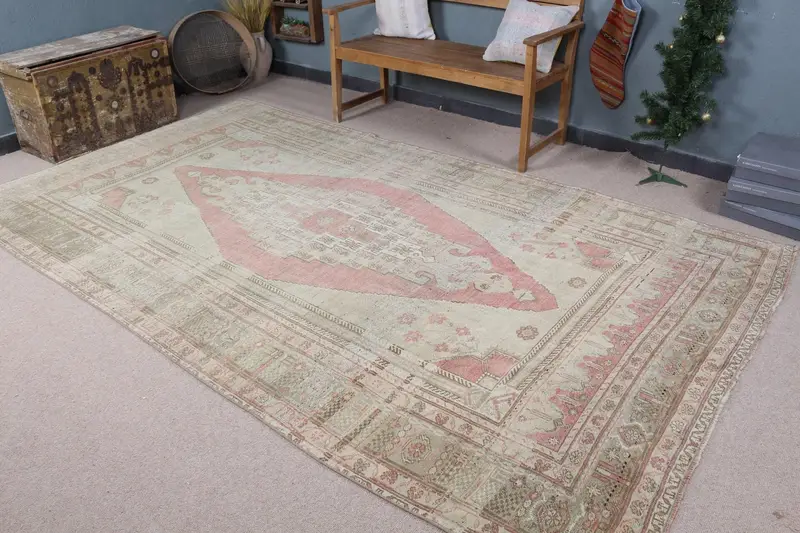Zarif Bej Oryantal Halı, Kırmızı Desenli 6,2x10,7 ft