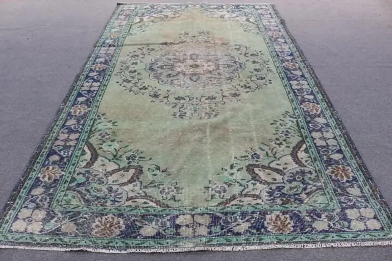 6,4x10,6 ft Mavi Hayvan Baskılı Yeşil Halı, Benzersiz Tasarım