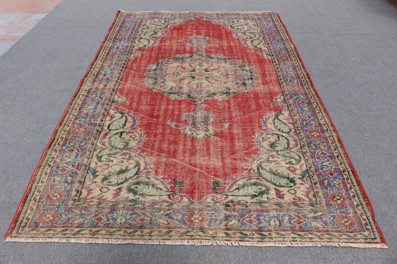 Kırmızı & Mavi Kareli Halı, 5,8x9,2 ft Zarif Dekor