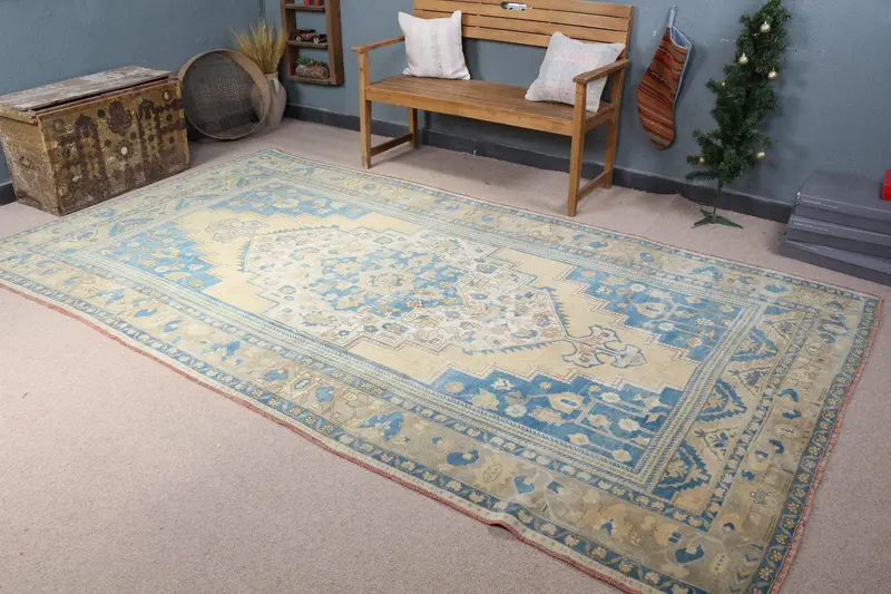 Sarı & Mavi İran Halısı, 6x10 ft Zarif Dekor