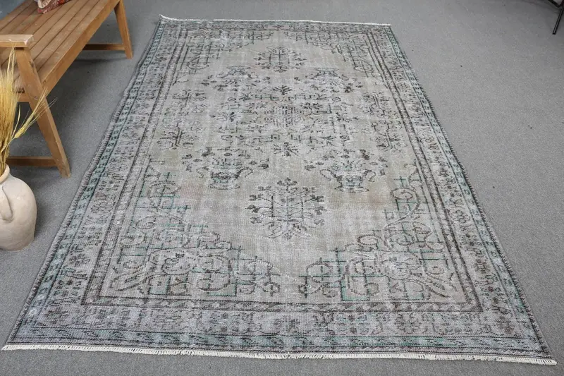 Zarif Yeşil ve Kahverengi Halı, 5,7x8,9 ft Çiçek ve Geometrik