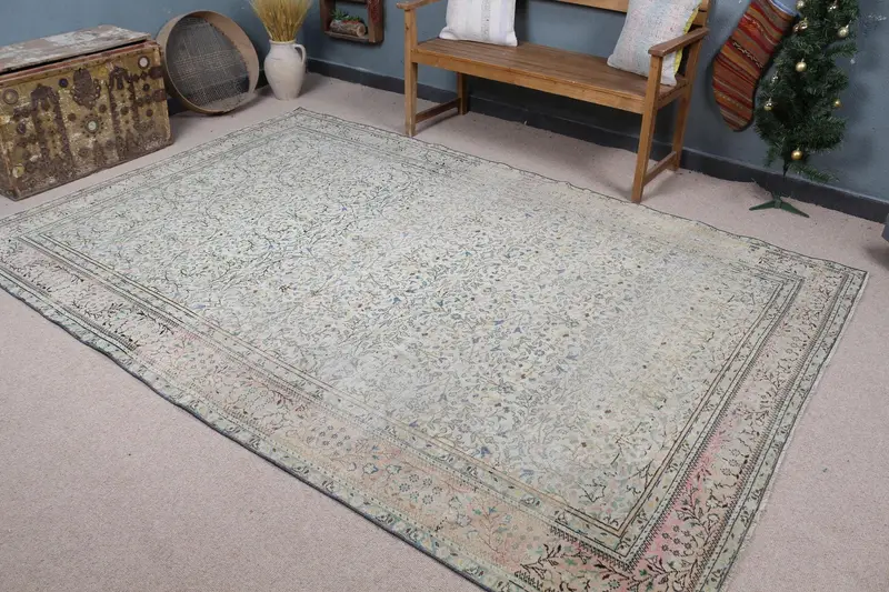 Bej ve Mavi Puantiyeli Halı, 6,3x9,3 ft Şık Dekor