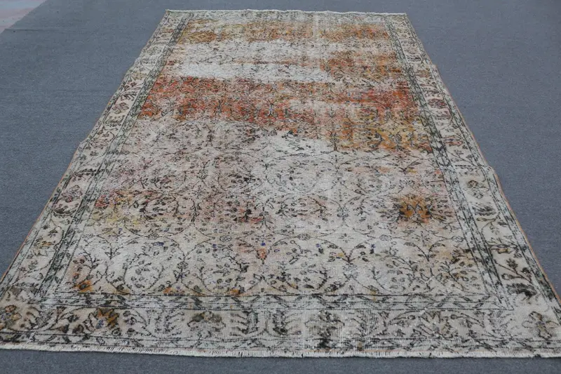 Canlı Turuncu Halı, 6,3x9,5 ft Soyut Tasarım