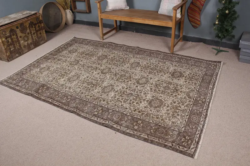 Zarif Bej ve Kahverengi Halı, 5,2x7,9 ft Puantiyeli Tasarım