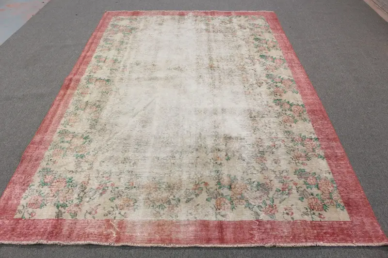 Kırmızı, Yeşil Hayvan Baskılı Halı, 6,3x9,3 ft Şık Dekor