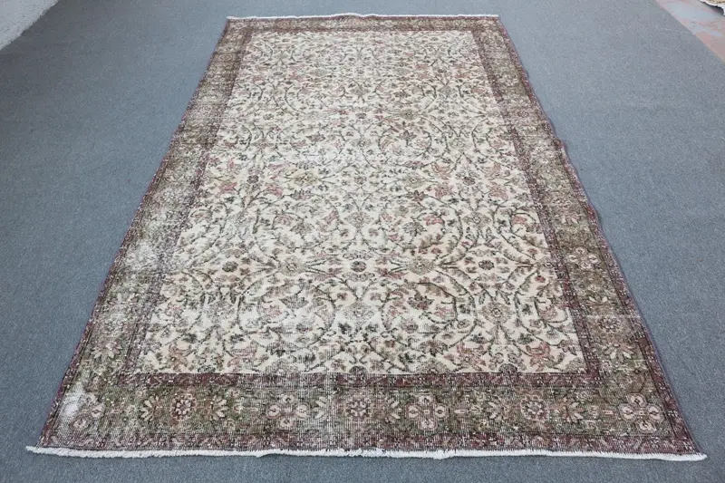 Zarif Yeşil ve Bej Halı, 5,4x9,4 ft Kenarlı Tasarım