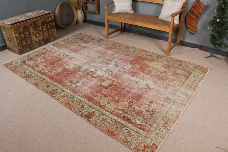 Kırmızı ve Bej Halı, 5,6x8,3 ft Sağlam Konfor