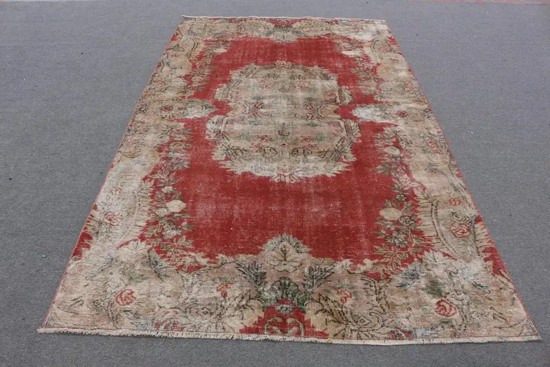 Kırmızı İkat Halı, 5.5x9.5 ft Zarif Kırmızı ve Bej