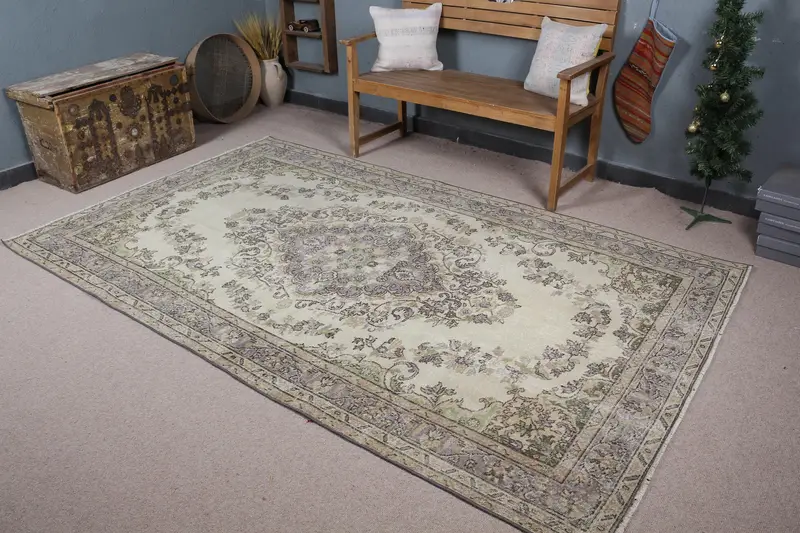 5,4x9,1 ft Bej & Mor Halı, Patchwork Desen