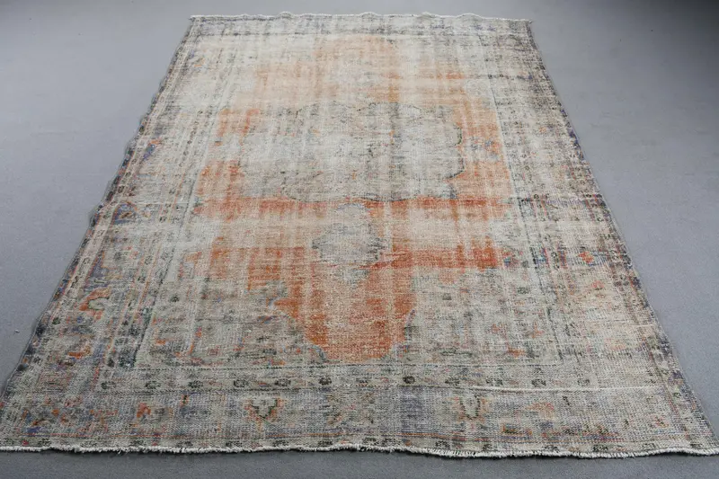 Canlı Turuncu ve Mavi Halı, 6,3x8,5 ft Botanik Tasarım
