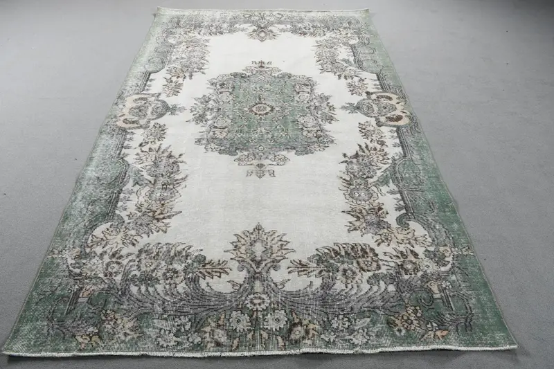 Zarif Bej Fas Halısı, Yeşil Desenli 5,3x8,9 ft