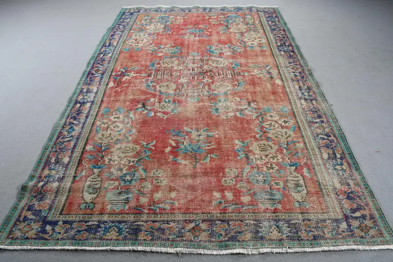 Kırmızı & Mavi Halı, 5,9x9,5 ft Zarif Düz Desenli