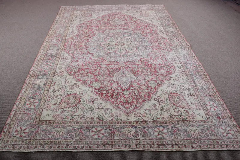Kırmızı Oryantal Halı, 6.8x10 ft Zarif Kırmızı ve Bej