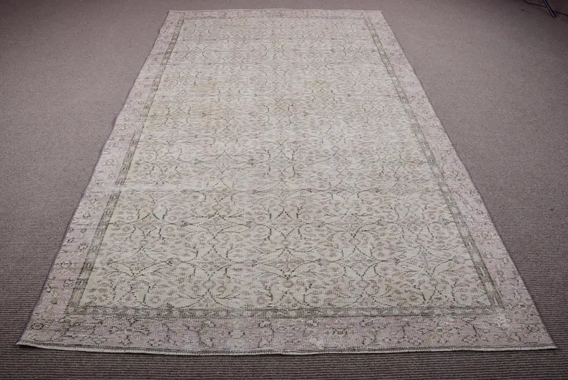 Zarif Bej ve Mor Halı, 5,7x9,6 ft Soyut Tasarım