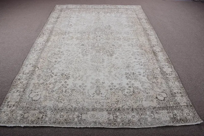 Zarif Bej Çiçekli Halı, 6,3x9,4 ft Şık Dekor