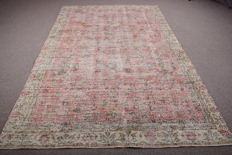 Kırmızı & Mavi Halı, 6,2x9,6 ft Zarif Katı Desen