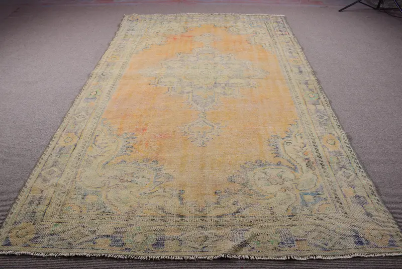 Canlı Turuncu ve Mavi Halı, 6,5x10,4 ft Çizgili Tasarım
