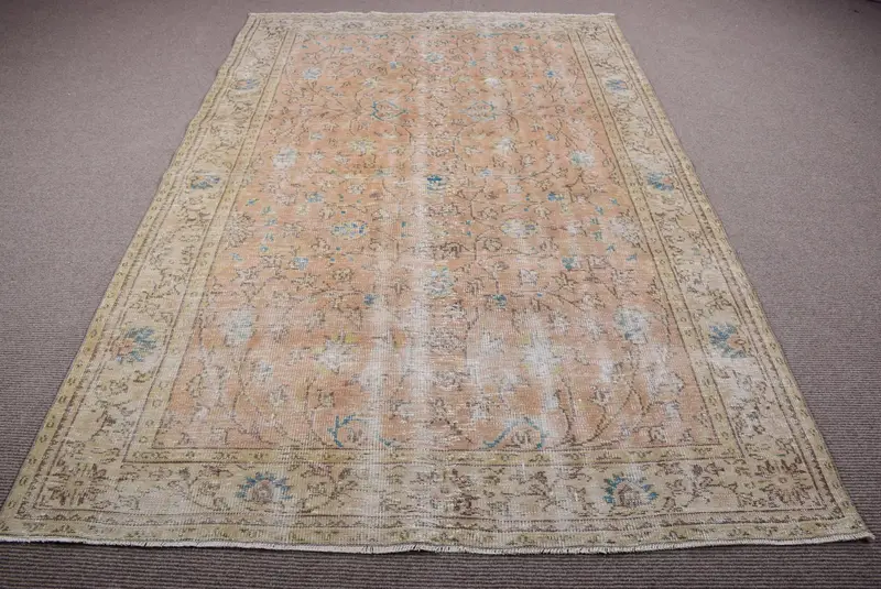 Turuncu ve Mavi Puantiyeli Halı, 5,9x8,9 ft