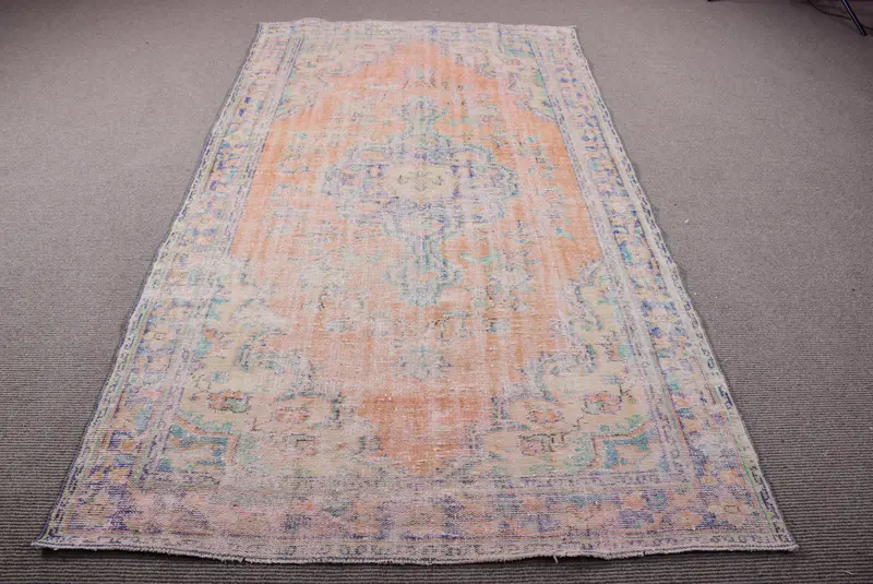 5,3x9,4 ft Halı, Canlı Turuncu ve Mavi Çiçek Desenli
