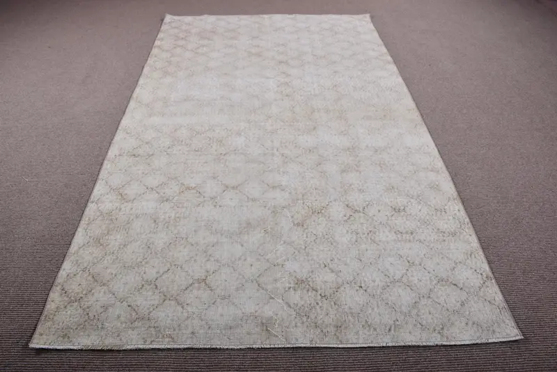 5,3x9 ft Bej İkat Halı, Zarif Kahverengi Vurgulu